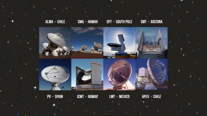 - Telescópios da colaboração Telescópio do Horizonte de Eventos Crédito EHT Collaboration (JPEG - 170 KB)