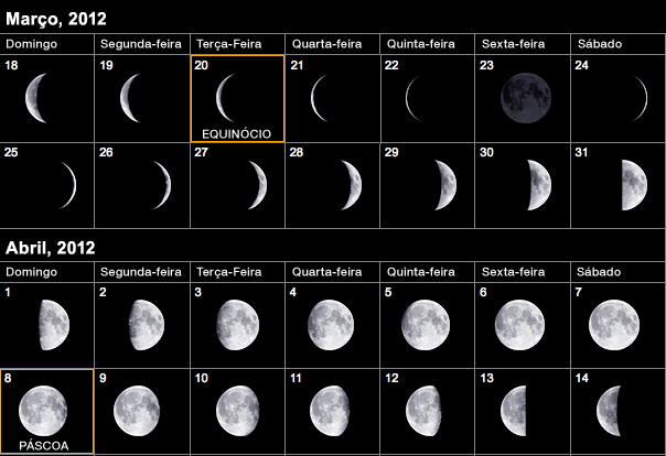 Fig1: Calendário lunar, entre o Equinócio e a Páscoa.