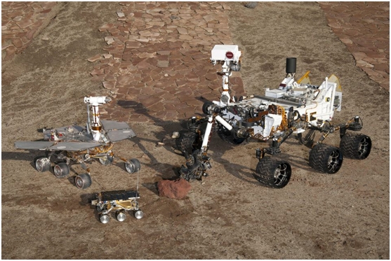 - Curiosity, Opportunity e Sojourner lado-a-lado.
