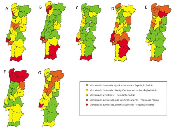 - FIGURA 2. Razões padronizadas de mortalidade por cancro nas NUT III de Portugal Continental. (JPEG, 169 KB)