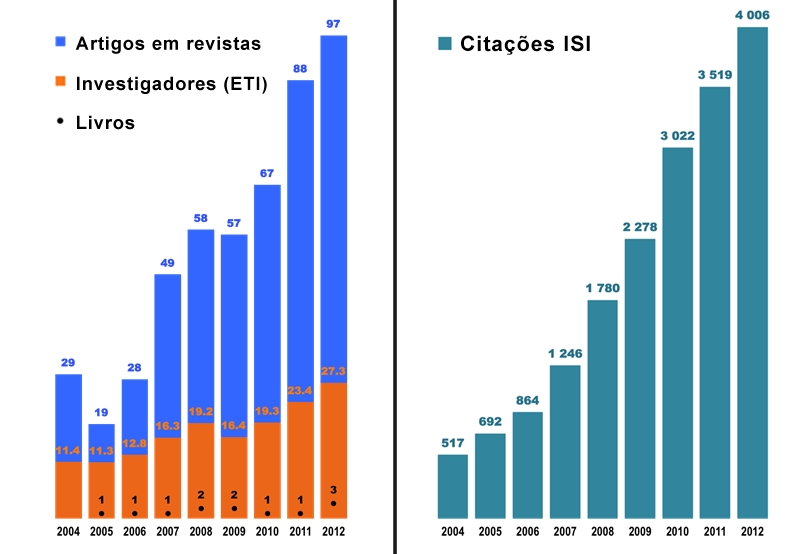 De destacar ainda que, de 2010 para 2012, o número de artigos publicados pelo CAUP aumentou mais de 40%, enquanto o número de citações aumentou mais de 75%.