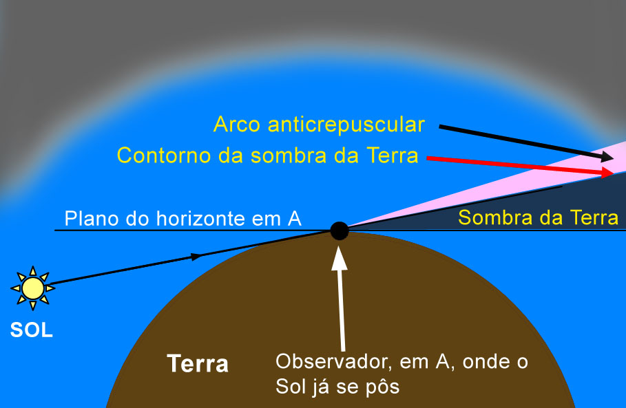 No final da tarde, quase ao cair da noite, podemos ver a sombra da Terra projectada no único alvo suficientemente grande para a conter: a própria atmosfera. Devido às muitas partículas em suspensão, a nossa atmosfera pode funcionar como um enorme ecrã.